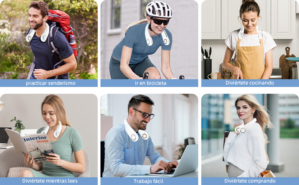 - ✔️Ventilador de cuello silencioso: este ventilador de cuello colgante portátil tiene un diseño simple pero elegante, flujo de aire envolvente de 360° muy ligero para refrescarte rápidamente. Fácil de guardar sin ocupar espacio.